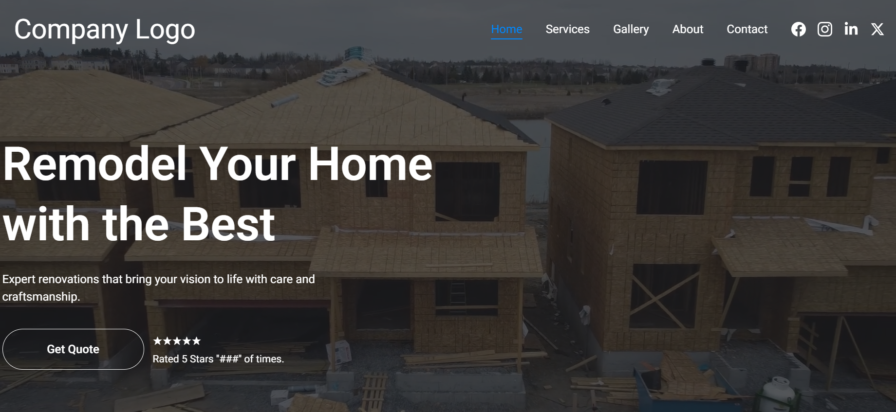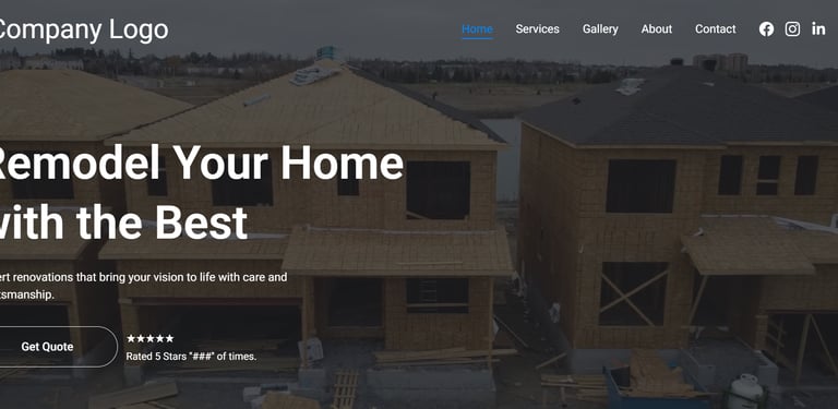 This construction demo site showcases a modern, client-focused design perfect for home remodeling and renovation companies. The homepage immediately tells visitors who you are and what you do — expert renovations with quality craftsmanship and personalized service — supported by strong visuals and clear calls-to-action to Get a Quote. The Services section breaks down key offerings like kitchen renovations, bathroom upgrades, flooring, painting, and full home remodels with engaging visuals that help potential clients understand your capabilities. Testimonials from satisfied customers build trust, while the gallery of before-and-after project photos highlights real results. With easy navigation to About, Services, Gallery, and Contact, this demo provides a complete and professional online presence that helps construction businesses convert visitors into leads.