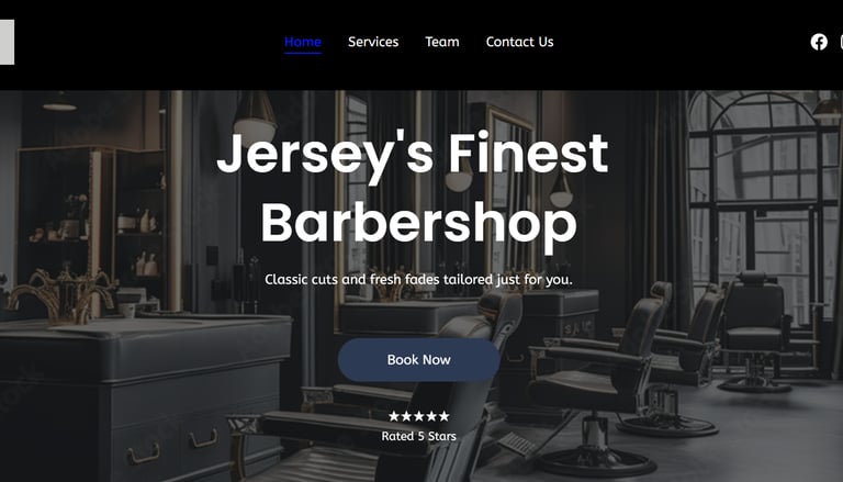 This professional barbershop demo showcases a sleek and modern design tailored for local grooming businesses. The homepage opens with a bold hero section featuring the shop’s name, tagline, star rating, and a clear Book Now call-to-action — helping visitors act fast. The site highlights services like classic haircuts, beard trims, hot towel shaves, and premium grooming packages with easy-to-read pricing and multiple Book Now buttons throughout, making it effortless for customers to schedule appointments online. A dedicated Meet Our Barbers section introduces the team with photos and specialties, letting clients choose their preferred stylist — a feature that builds trust and personalization. Customer testimonials and a visible contact area with email and phone info enhance credibility and local relevance. This demo is a great example of a clean, user-friendly barber website that focuses on booking conversions, service transparency, and strong brand presence.